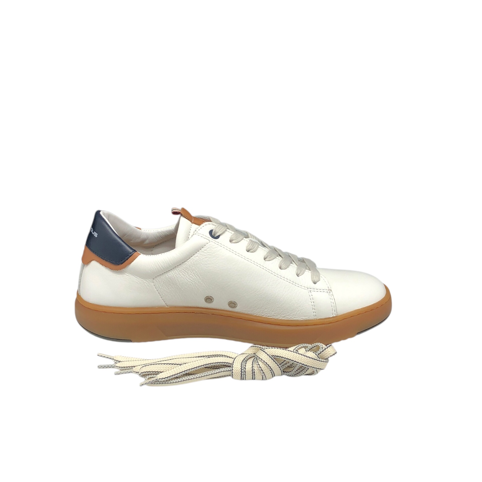 AMBITIOUS COD.13672A3492AM SNEAKER UOMO IN PELLE COL.OFF WHITE NAVY