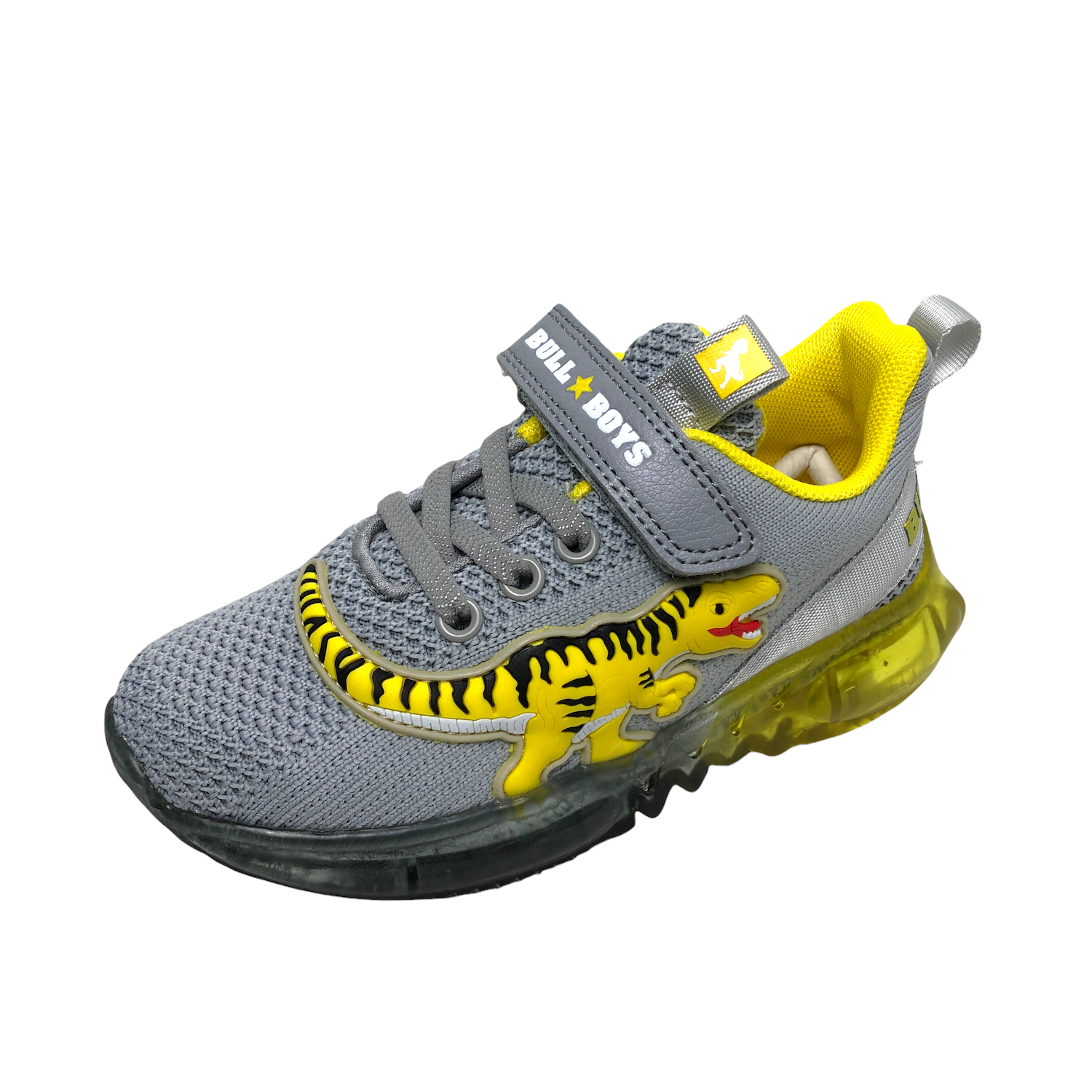 BULL BOYS COD.BBAL2103 SNEAKERS BIMBI DINOSAURO LIGHTS IN TELA COL.GRIGIO