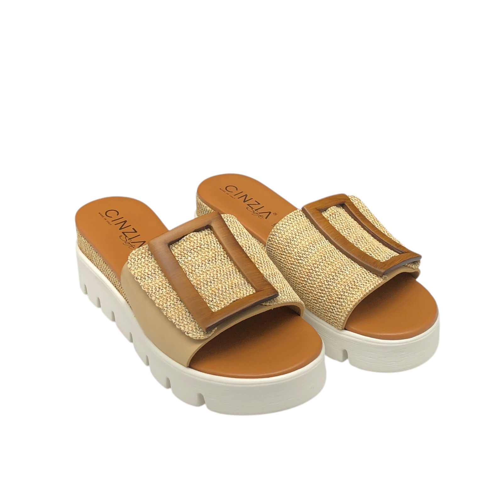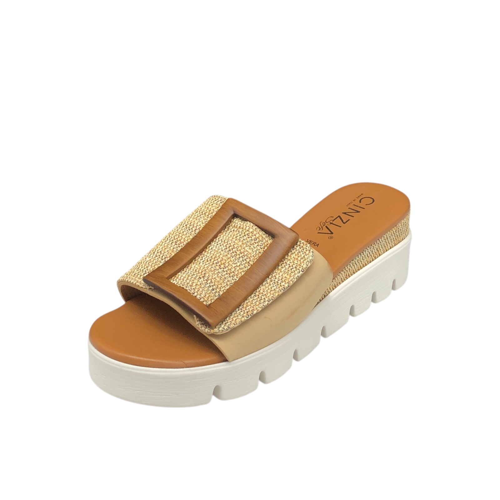 CINZIA SOFT COD.CA120712001 SANDALI COMODI DONNA IN PELLE COL.CARAMELLO AVORIO