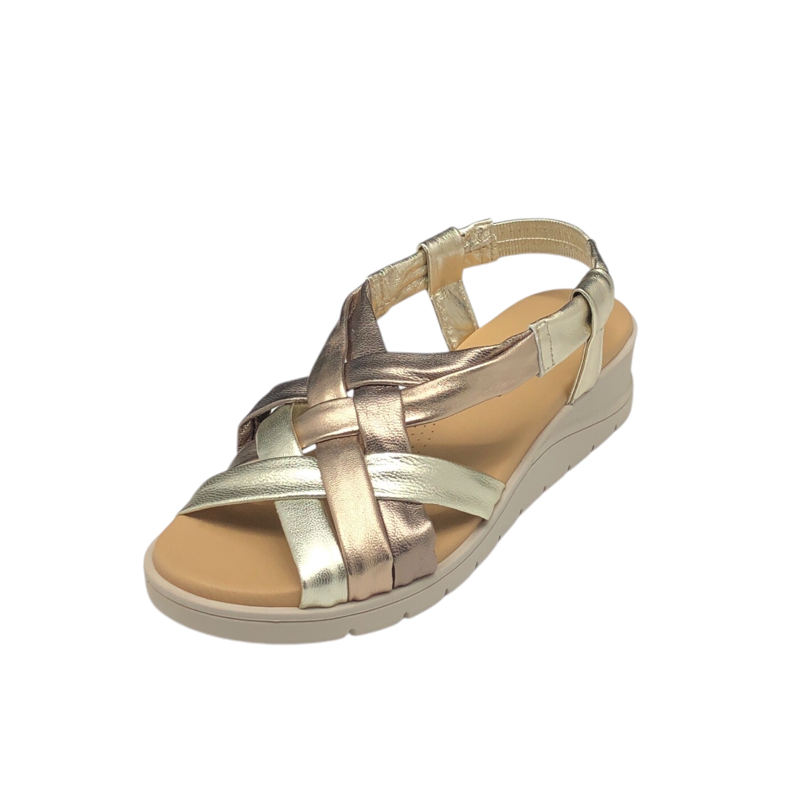 CINZIA SOFT COD.EE32862002 SANDALI COMODI DONNA IN PELLE COL.ORO BRONZE MADE IN ITALY