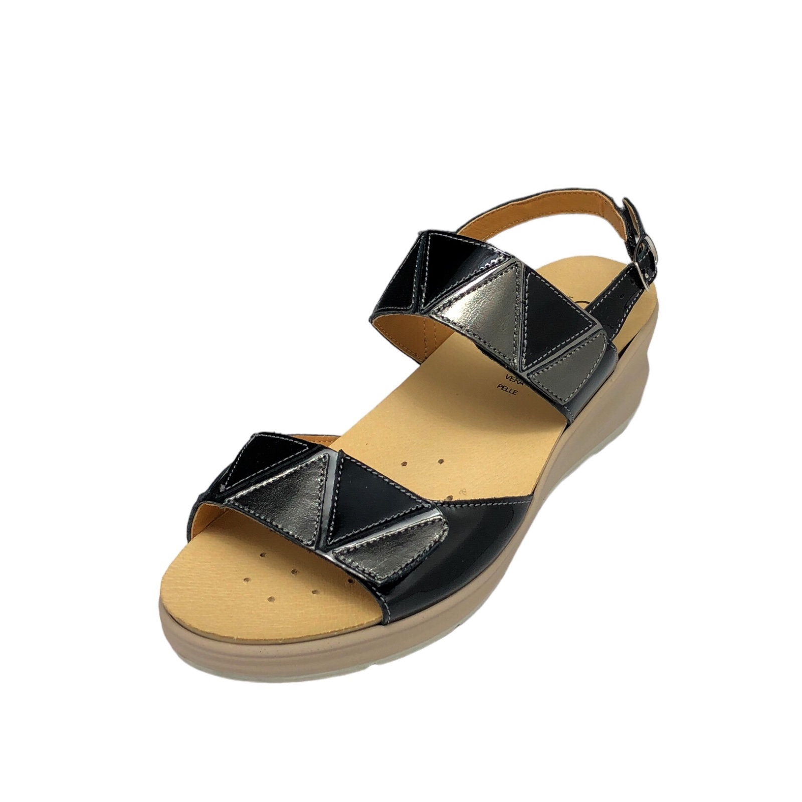 CINZIA SOFT COD.IO13643VLS001 SANDALI COMODI DONNA IN PELLE COL.NERO C.FUCILE - MADE IN ITALY
