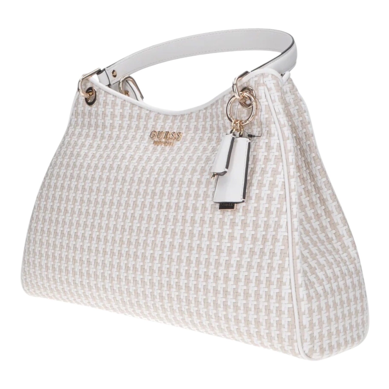 GUESS COD.WG9631123 SHOPPING BAG DONNA MIIRENA IN ECOPELLE INTRECCIATA CHIUSURA CON BOTTONE COL. WHITE