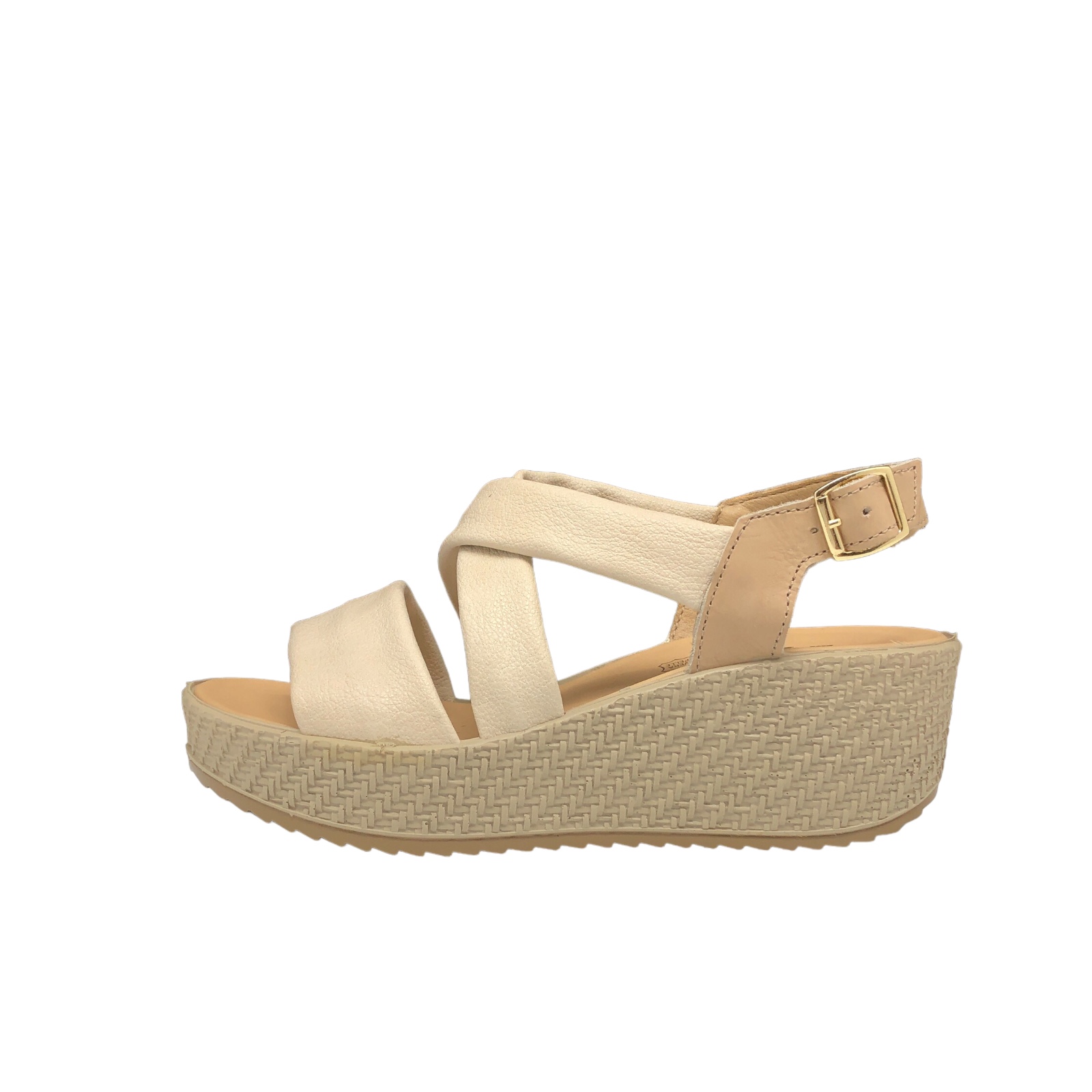 IMAC COD.557670 SANDALI DONNA IN PELLE CON ZEPPA E TACCO COL.SAND BEIGE MADE IN ITALY