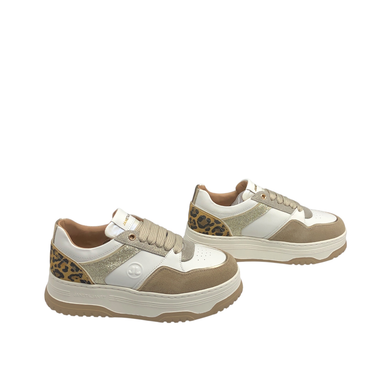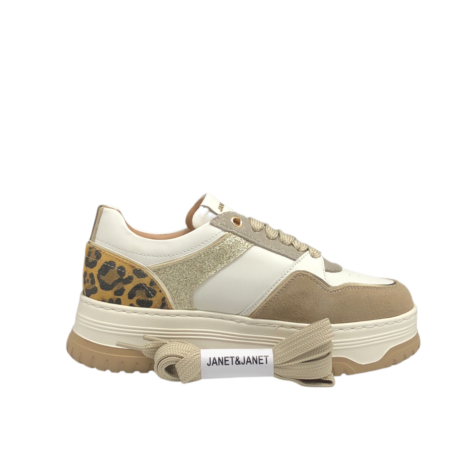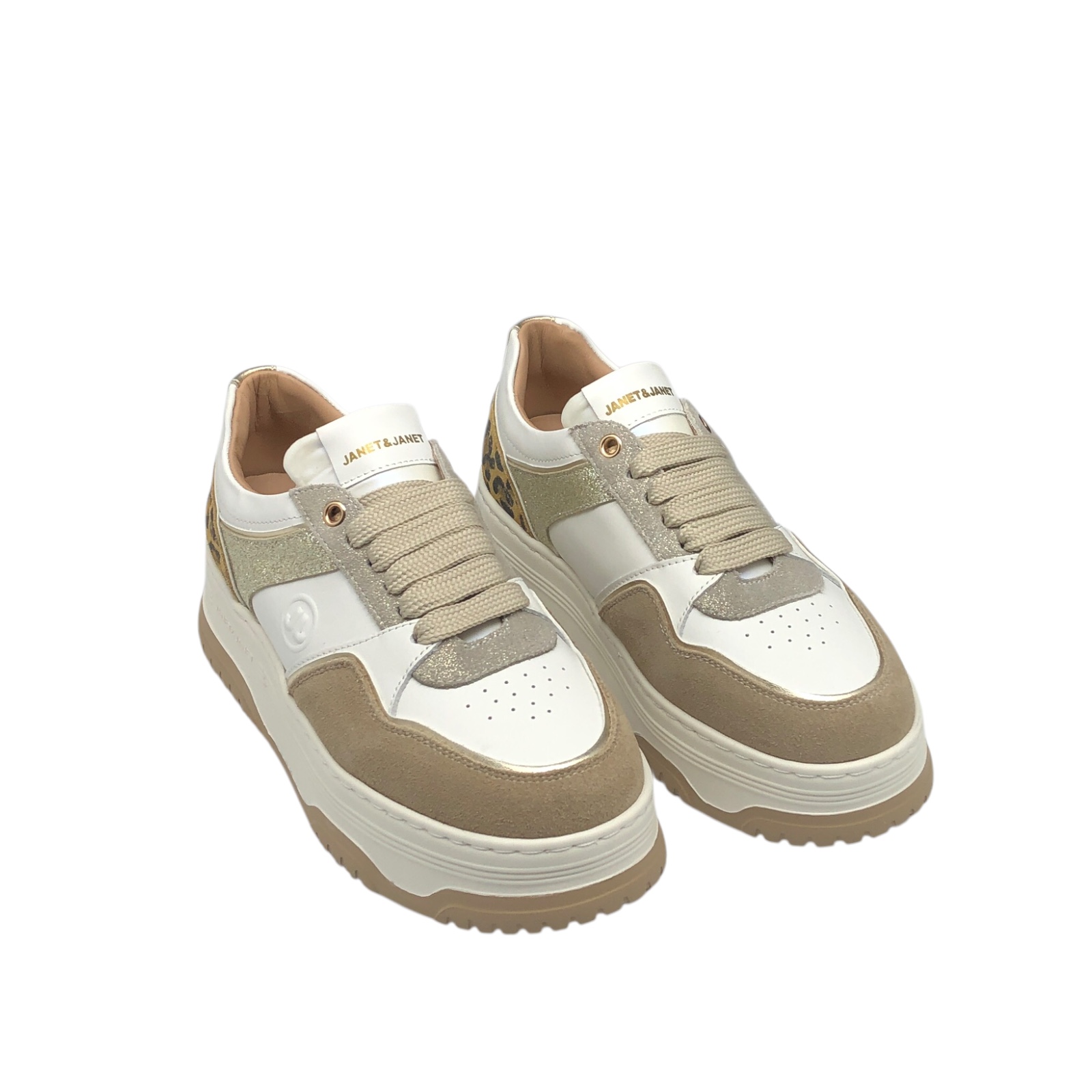 JANET E JANET COD.J424 SCARPE CASUAL DONNA IN PELLE COL.CAPPUCCINO OFFWHITE GOLD