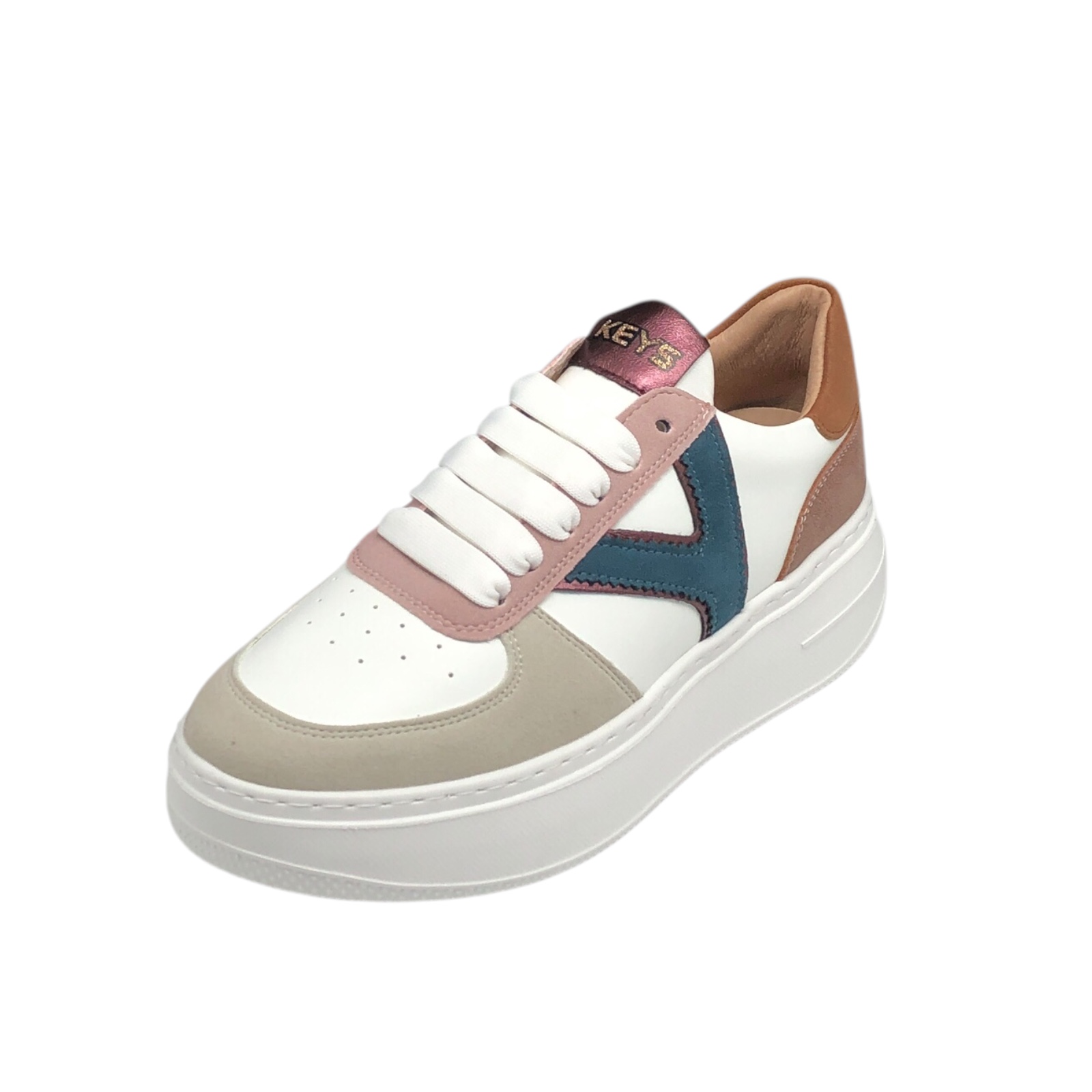 KEYS COD.K11211 SCARPE CASUAL DONNA IN PELLE COL.LAMB WHITE PINK BROWN ROSE 10104