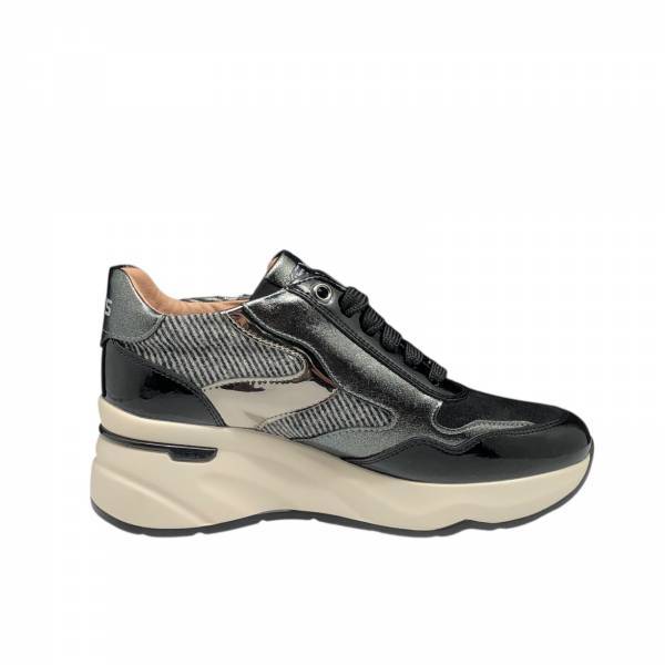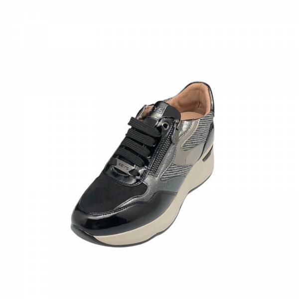 KEYS COD.K11250 SCARPE CASUAL DONNA IN PELLE CON TACCO E PLATEAU COL.BLACK CANNA DI FUCILE 10046