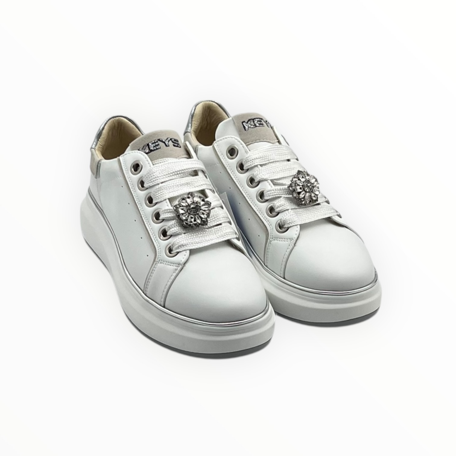 KEYS COD.K11802 SNEAKER DONNA IN PELLE COL.WHITE SILVER 10506