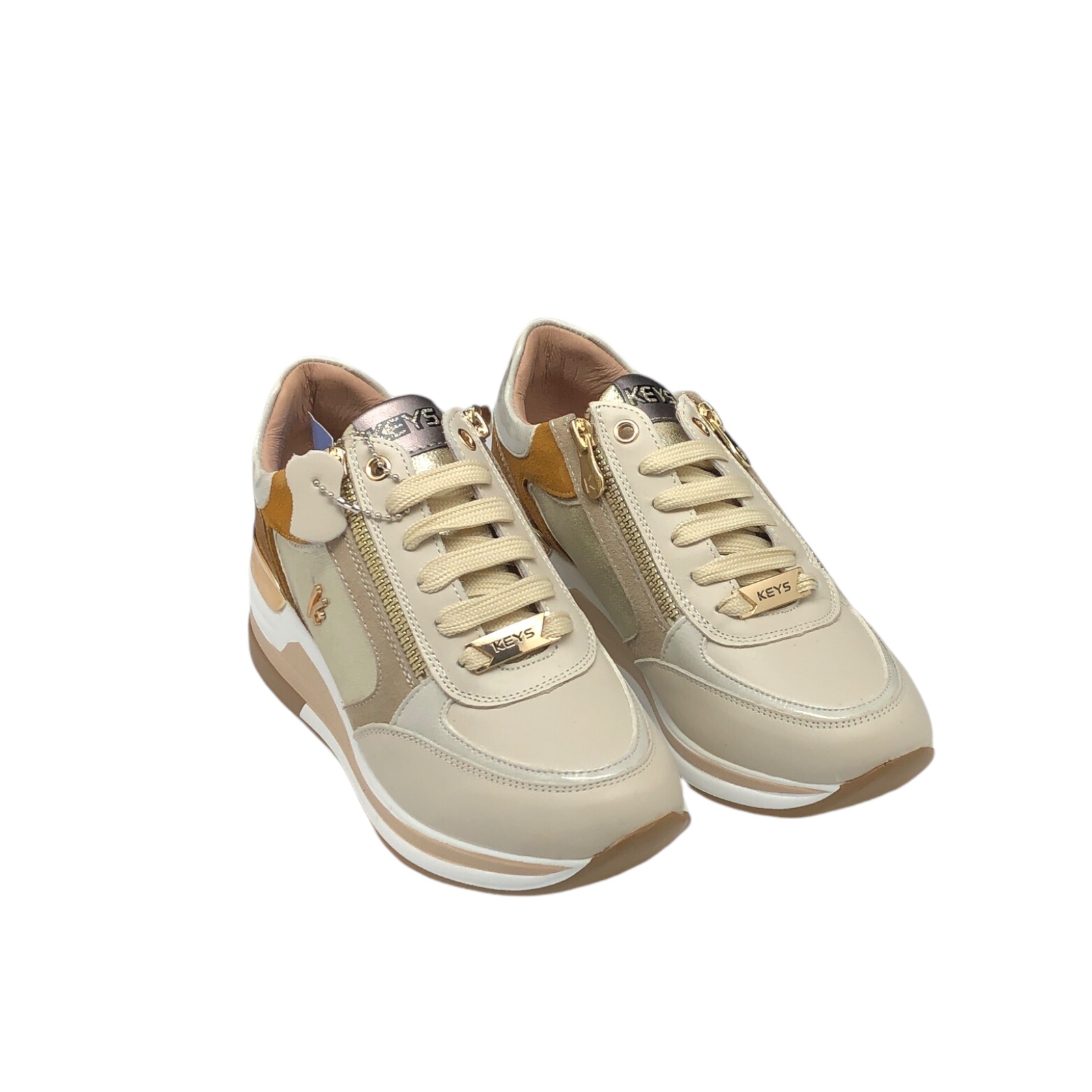 KEYS COD.K9814 SCARPE CASUAL DONNA IN PELLE COL.CREAM BEIGE CAPPUCCINO 9019