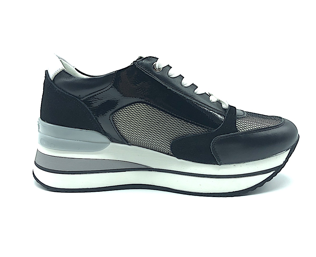Keys Sneakers donna cod.K4501 col.Black4304 in vera pelle - plateau alto da cm 4,5 al tallone a cm 3 alla punta.
