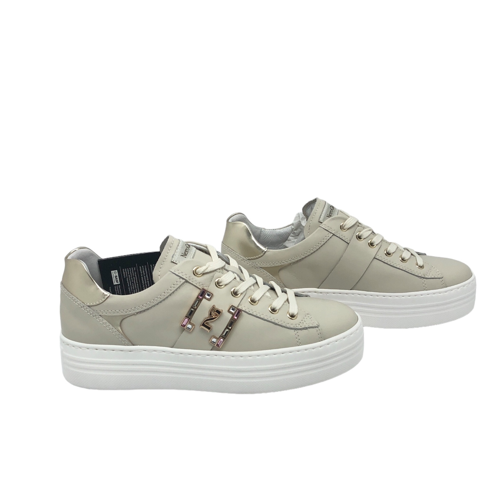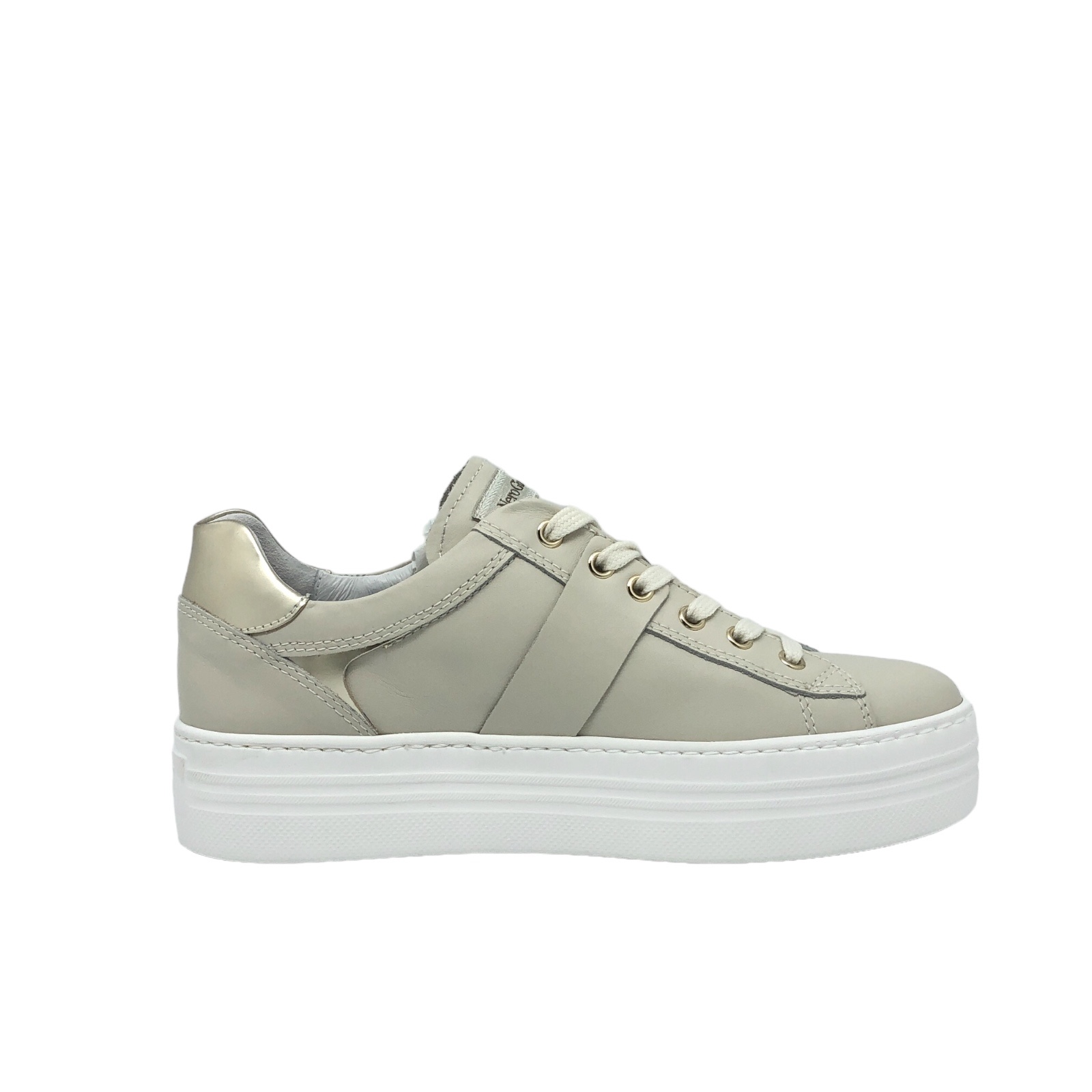 NERO GIARDINI COD.E409967D710 SCARPA CASUAL DONNA VELVET IN PELLE COL.MILK PLATINO MADE IN ITALY