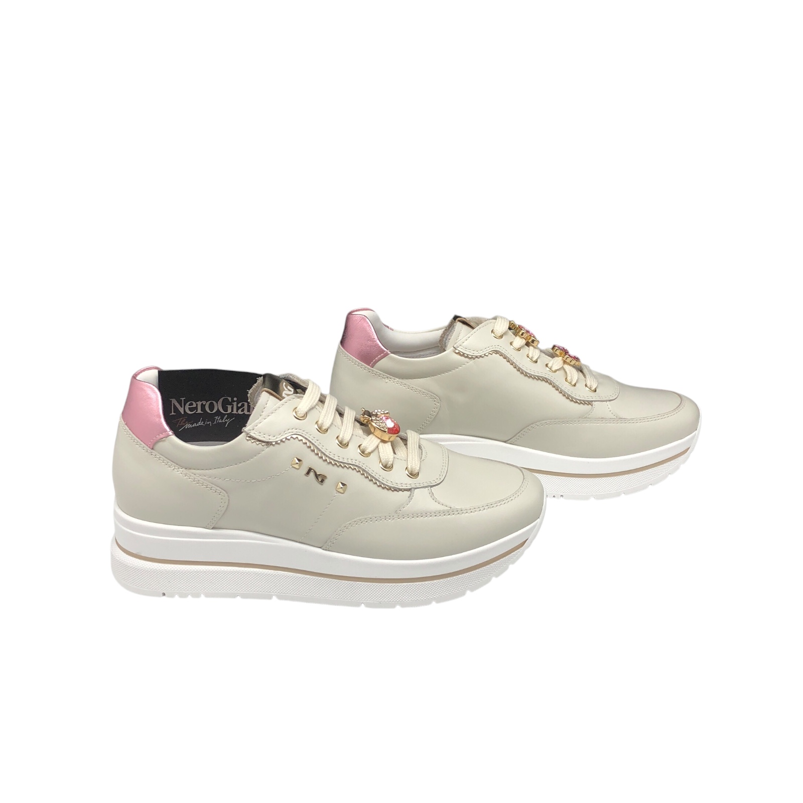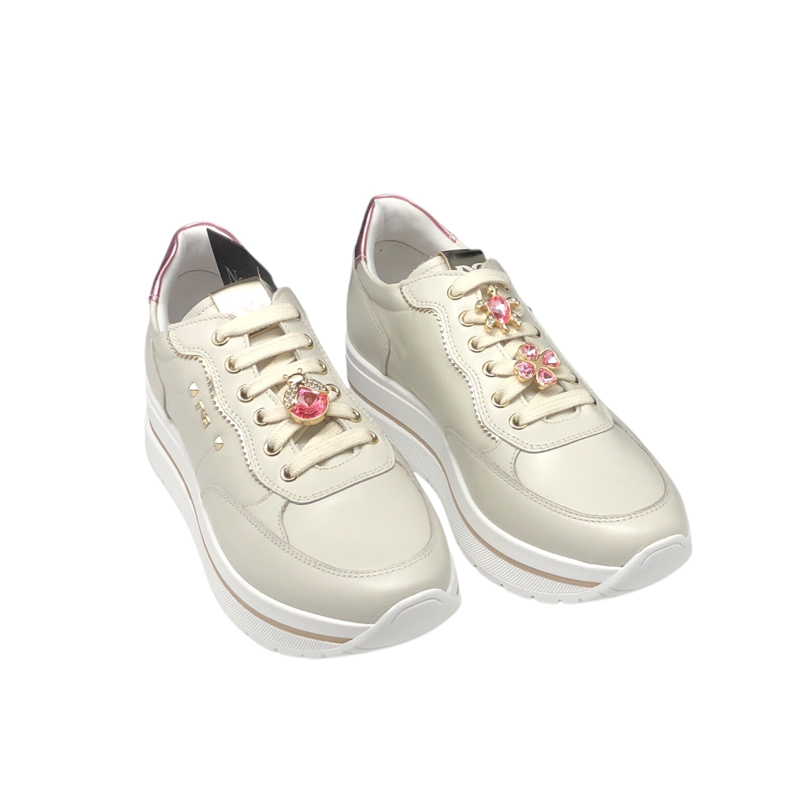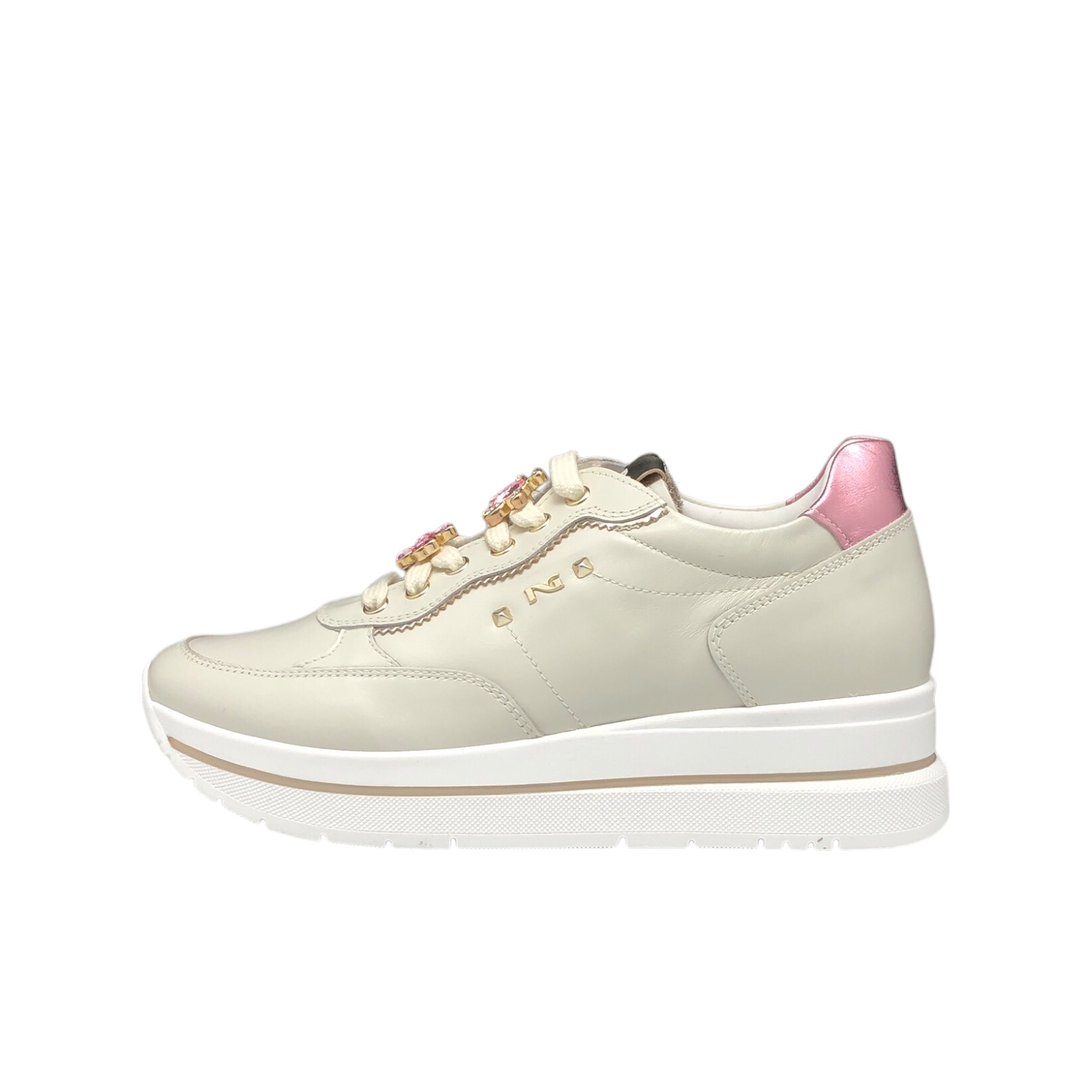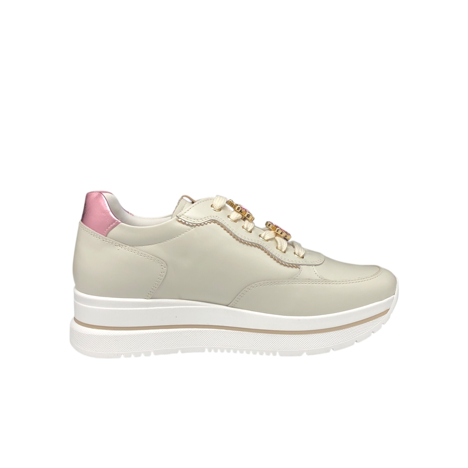 NERO GIARDINI COD.E512907D SNEAKER DONNA VELVET IN PELLE COL.OSSO PLATINO