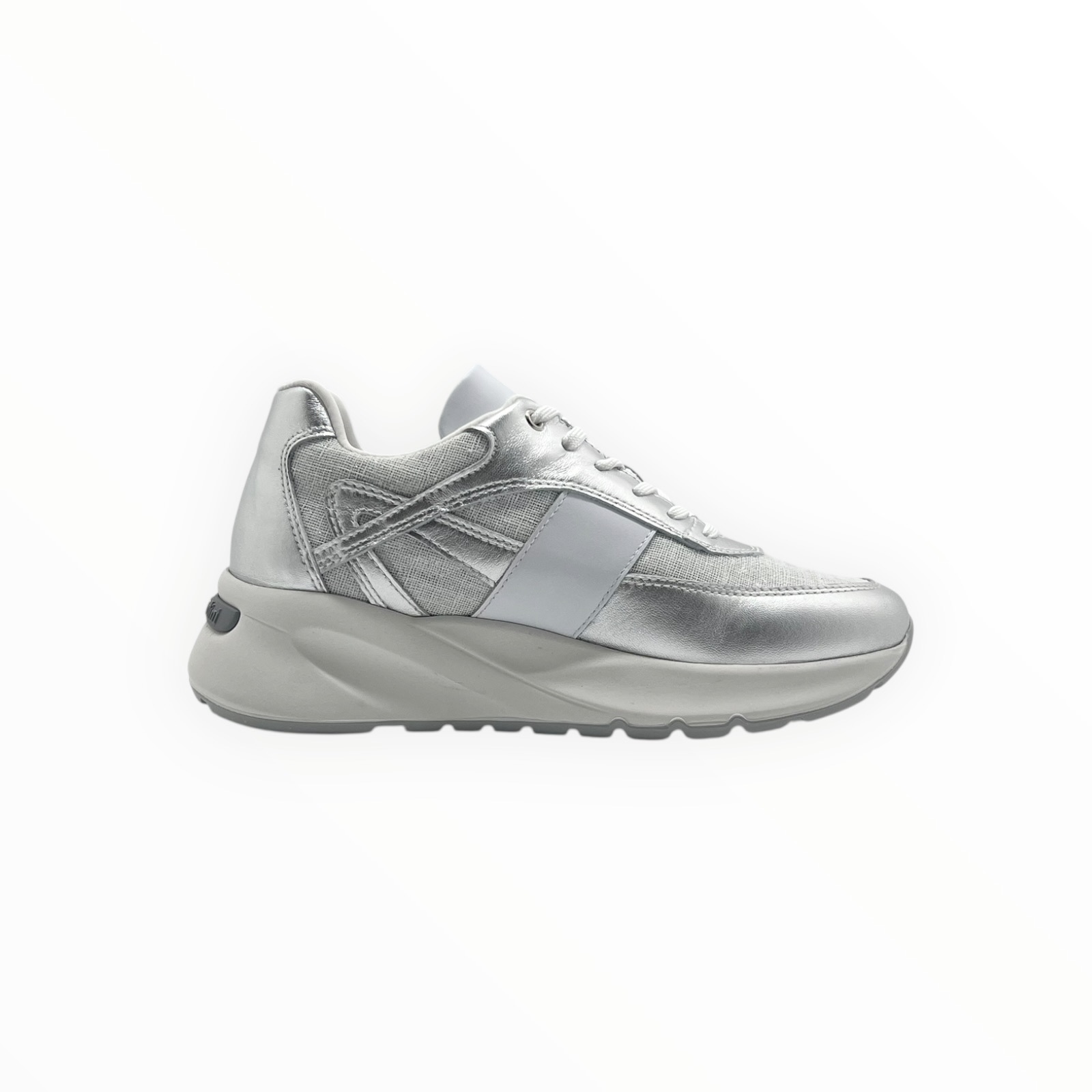 NERO GIARDINI COD.E615183D/700 SNEAKER DONNA LAMINATO IN PELLE COL.ARGENTO BIANCO