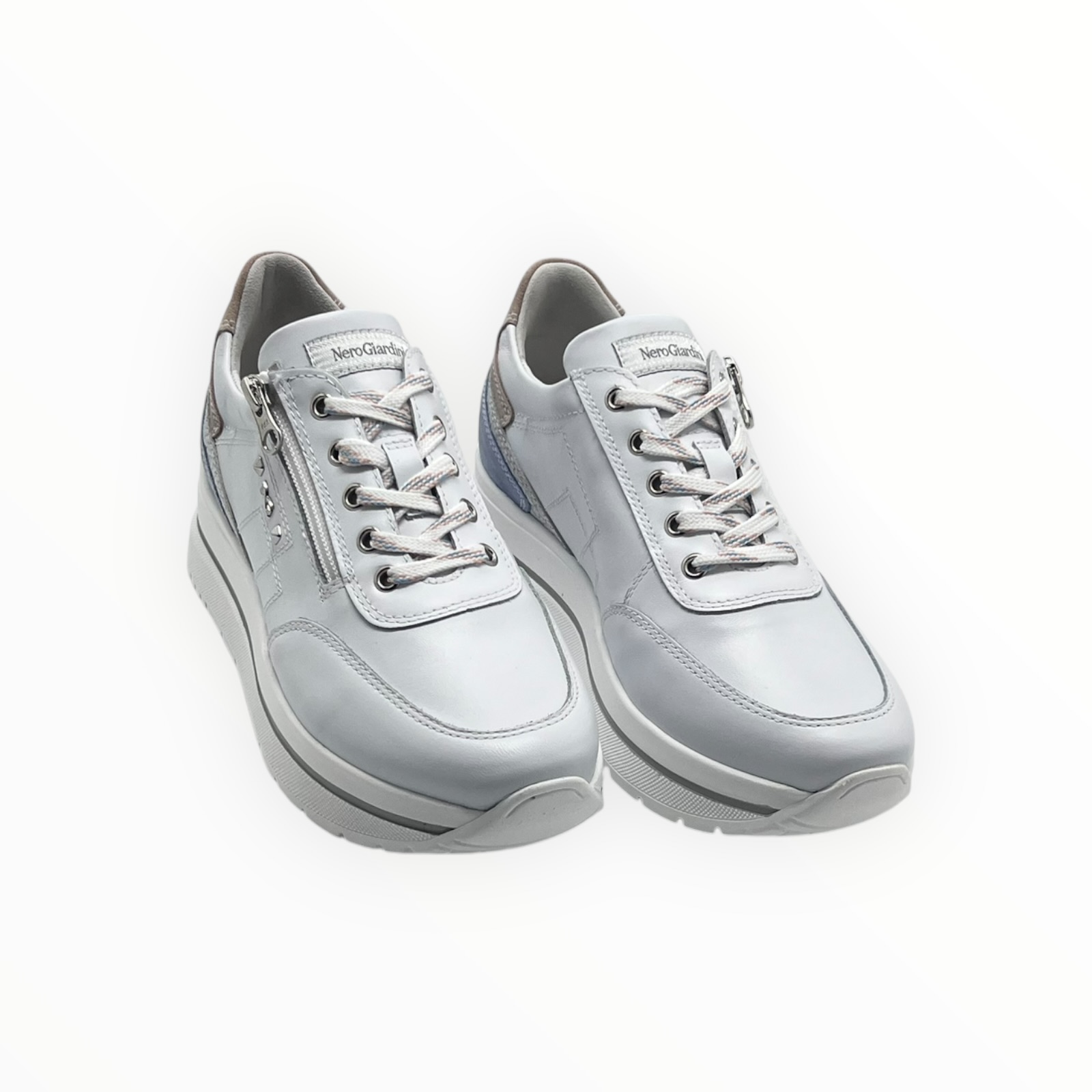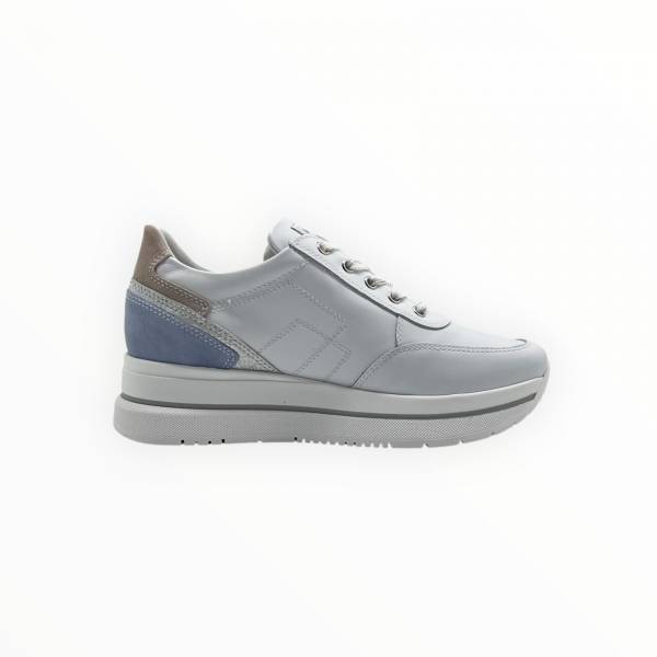 NERO GIARDINI COD.E615203D/707 SNEAKER DONNA SKIPPER IN PELLE COL.WHITE SILVER