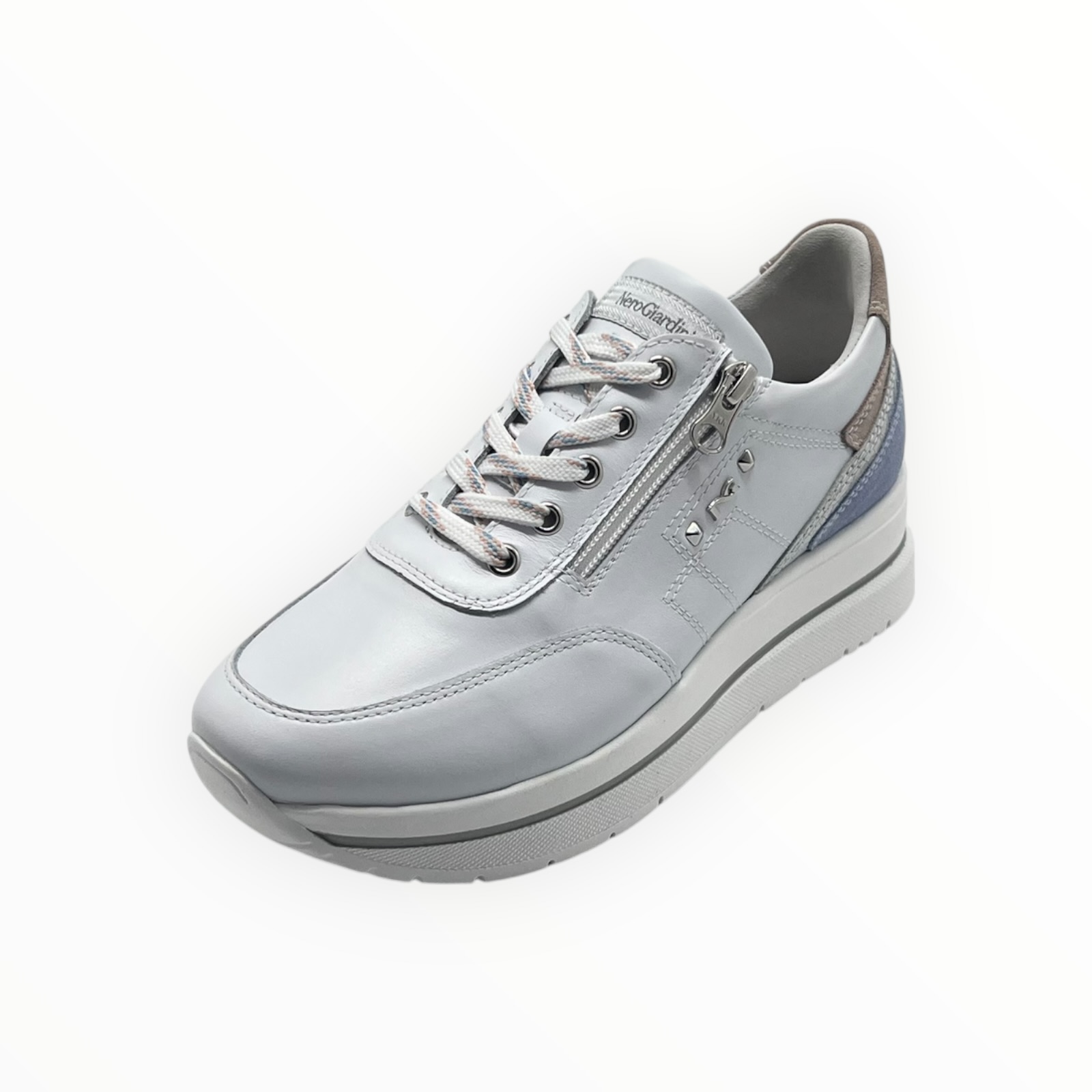 NERO GIARDINI COD.E615203D/707 SNEAKER DONNA SKIPPER IN PELLE COL.WHITE SILVER
