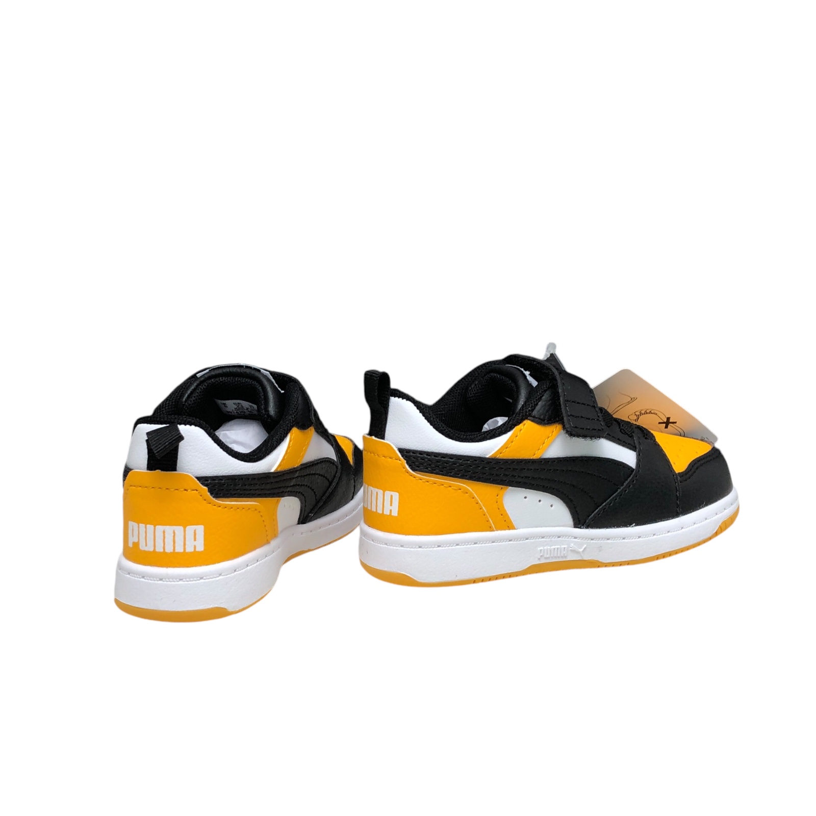 PUMA COD.39742018 SPORTIVE KIDS REBOUND V6 LO AC IN PELLE COL.WHITE BLACK TANGERINE