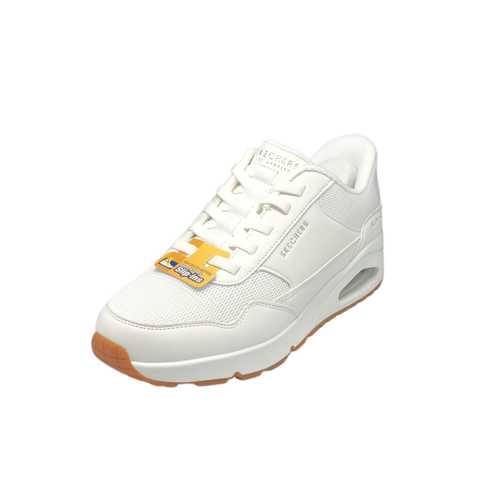 SKECHERS COD.183022/WHT SPORTIVE UOMO SLIP-INS BANKSIA IN PELLE E TELA COL.WHITE CON MEMORY FOAM E AIR COOLED
