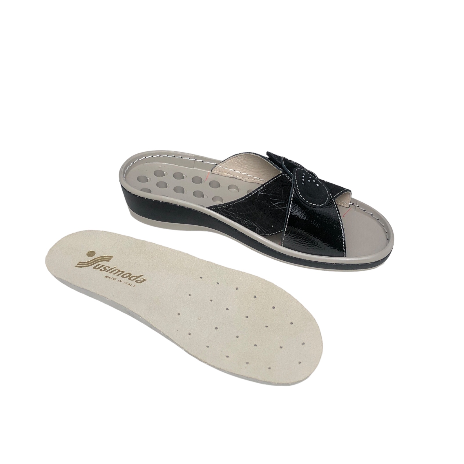 SUSIMODA COD.1902P011 CIABATTE COMODE DONNA STICK EST/NAPLAK COL.NERO