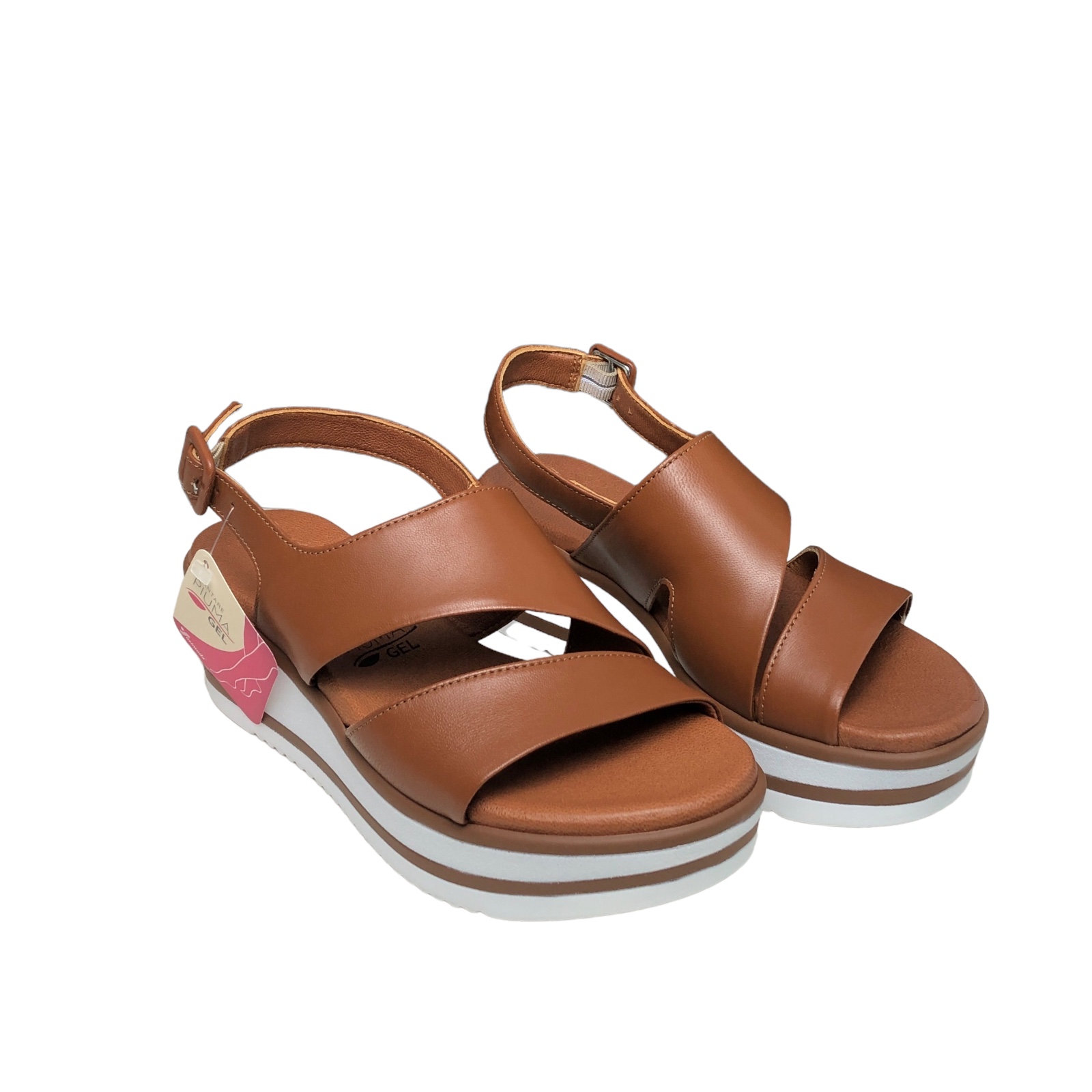 SUSIMODA COD.23100701 SANDALI DONNA IN PELLE TACCO E PLATEAU COL.CUOIO MADE IN ITALY PLANTARE PIUMA GEL