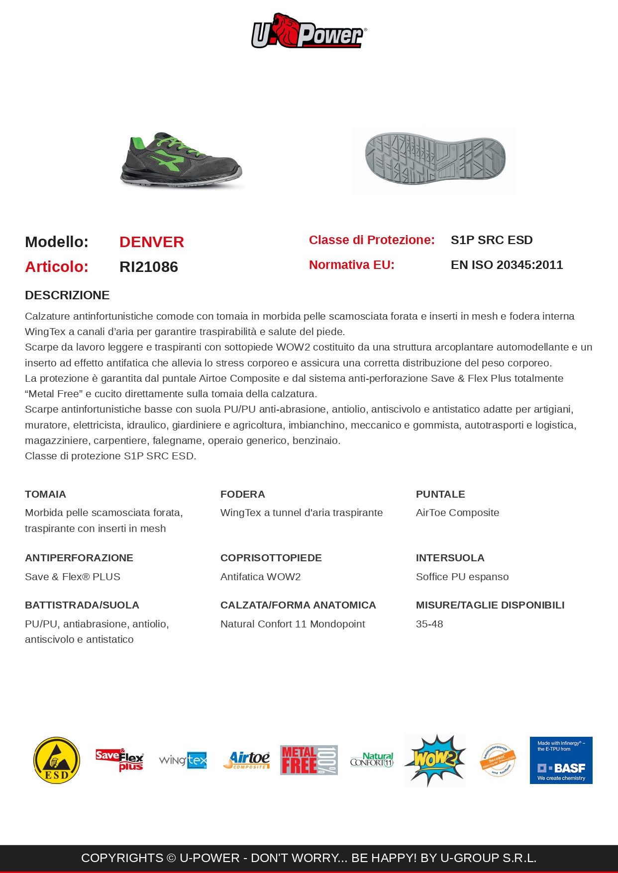 UPOWER COD.RI21086 SCARPE ANTIFORTUNISTICHE DENVER SCAMOSCIATE COL.GRIGIO VERDE