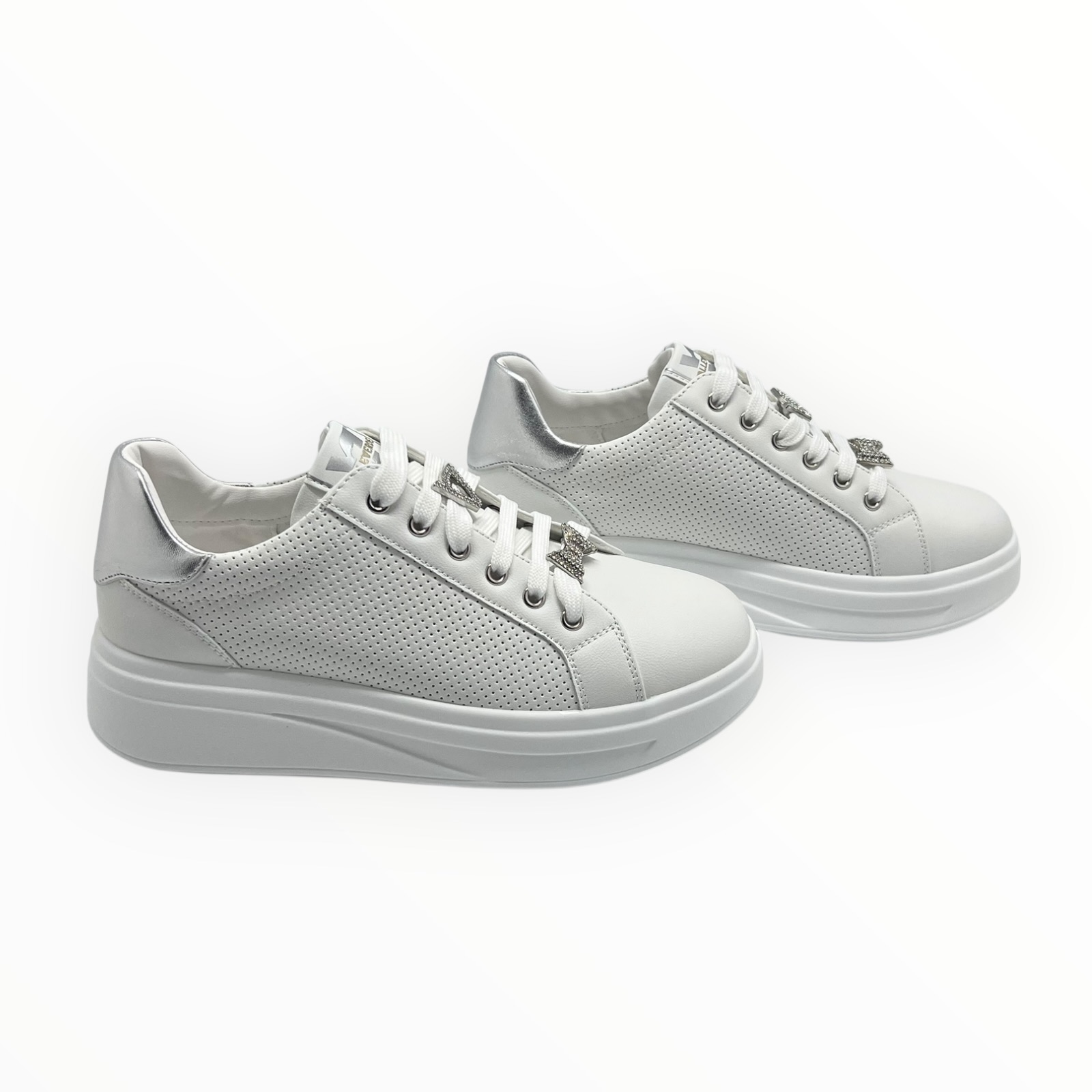 VALLEVERDE COD.35102 SCARPE CASUAL DONNA IN PELLE COL.SILVER MADE IN ITALY