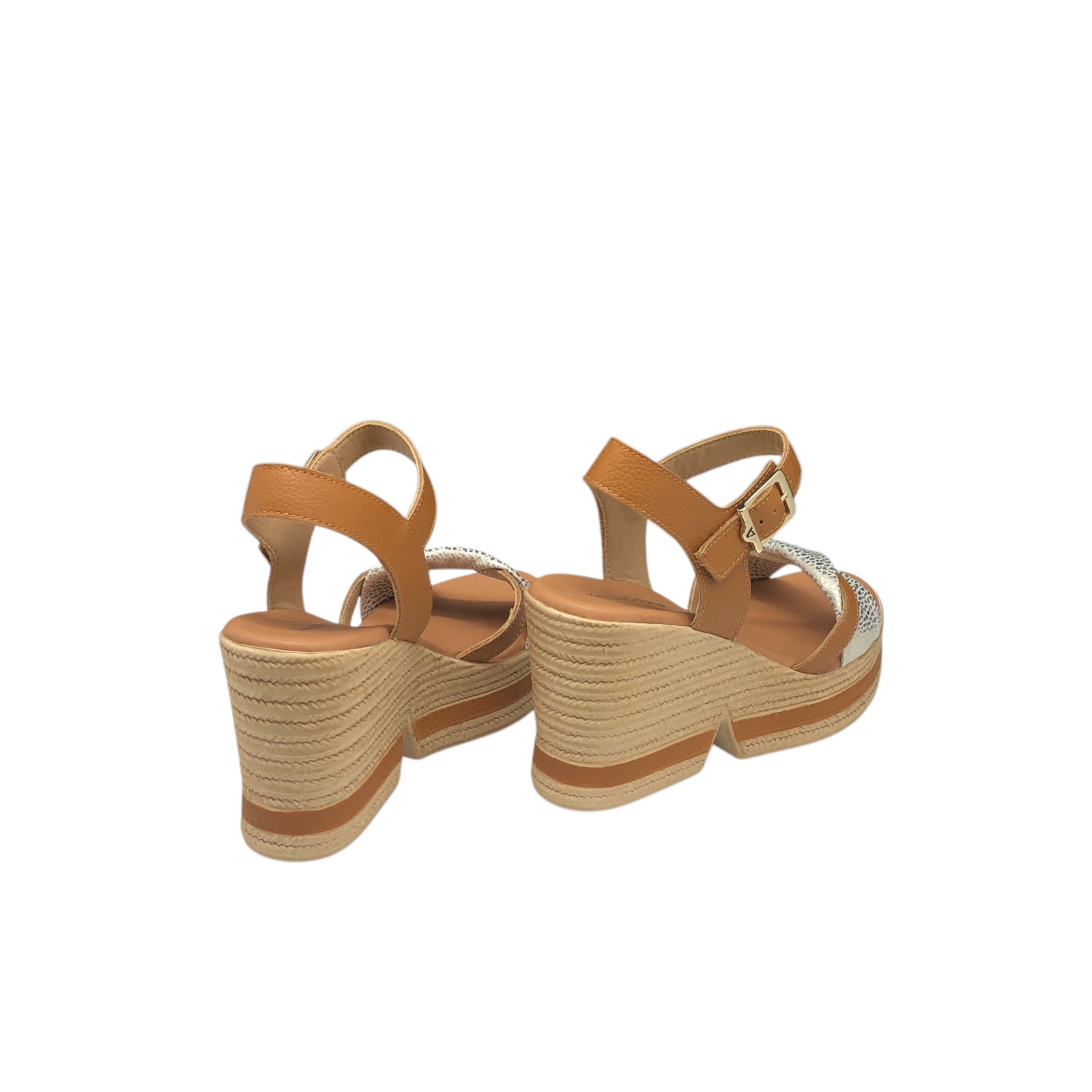 VALLEVERDE COD.VV49221M SANDALI DONNA CON TACCO E PLATEAU IN PELLE COL.CUOIO